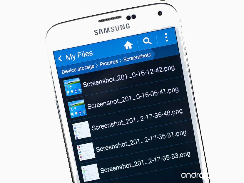 - Using the command line or Android File transfer tool you will find a screenshot at /pictures/screenshots.
